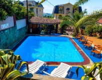 Бассейн ухоженный, есть детская анимация, мангальная зона. Рядом отличный пляж бархатные сезоны.