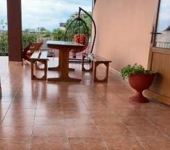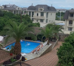 Отличный отель. Вежливый персонал. Мы были в мае месяце с семьей, бронировали семейный большой номер: в номерах современная мебель, телевизор, кондиционер, чисто и уютно. Пользовались кухней для приготовления пищи, всё есть- посуда, холодильники. Дети накупались в бассейне с подогревом, на территории отеля также есть мангал и летняя беседка, большая комната для детских игр. Рядом магазины, автобусные остановки, развилки дорог до центра города. Вид с балконов потрясающий - горы, центр города, особенно вечером красиво, всё в подсветке. Рядом Абхазия, съездили на экскурсию, в отеле посоветовали гида. В общем рекомендую отель, и цены доступные, и местоположение отличное.