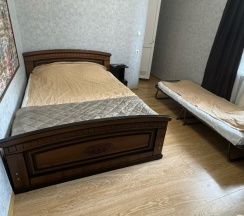 Проживали в апартаментах. Чисто, регулярная уборка, смена белья и полотенец. Удобная кровать и двуспальный диван. Есть стиральная машинка! Нас было четверо, двое взрослых и двое детей - всем было комфортно, не тесно.