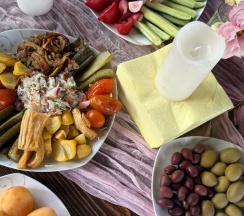 Очень красивый двухэтажный дом с прекрасной гостиной/кухней и двумя спальнями! А какая роскошная территория в цветах, деревьях и плодовых кустах. И как же приятно после горячего хаммама погрузится в приятную прохладу бассейна на улице 😍