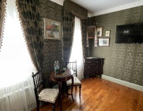 Понравилось: прекрасная возможность провести "Ночь в музее". мы жили среди экспонатов 19 века, чувствовали себя жителями ушедшей эпохи, но с современными удобствами. Были с внуком, поэтому взяли самый колоритный номер- ямщицкий: и просторный и много любопытного. Об удобствах много написано- они на высоте, приехали в мороз, поэт поэтому горячий чай с вареньем, печеньями и т.д. (весь день!) бли очень кстати. Отопление без вопросов, трапезная в стиле эпохи-внук был в восторге.