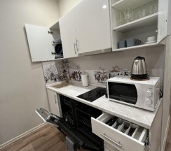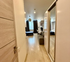 Уютная студия, очень светлая, приятный интерьер. Порадовало наличие кофемашины, с удовольствием заварила кофе с утра! Заселение прошло быстро и удобно, спасибо менеджеру Лире!