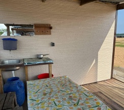 Разместиться гости могут в небольших домиках с верандой и удобствами поблизости. Для компаний побольше имеются благоустроенные дома с собственной ванной комнатой и оборудованной кухней. Гостям предоставляются полотенца и постельное белье, в домиках с кухней есть все необходимое для полноценной готовки, в том числе посуда, столовые приборы, электрическая плита, чайник.