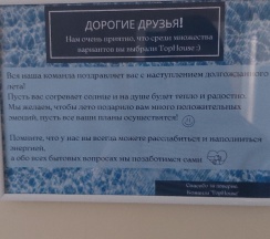 2. Отсутствовал замок на двери в туалет, она не закрывалась плотно, мы ее на полотенце закрывали. Нам предложили починить, но ждать ремонт или пускать кого-то без тебя туда, где твои вещи, было не комфортно.