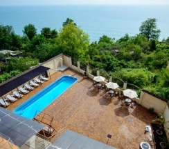 Бассейн на территории .персонал гостиницы .в столовой большой выбор меню .в номерах есть телевизор ,сплит система ,холодильник .все отлично ,до моря могут отвезти и забрать и свозить по своим делам в головинке .