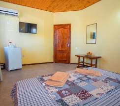 Уютный номер с интерьером в теплых тонах, оснащен всем необходимым и располагает к приятному расслабленному отдыху на морском побережье
