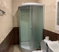 Номер на втором этаже гостевого дома , на первом этаже гостевого дома общая кухня и стол под навесом , туалет и душевая общие.