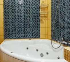 Находясь в номере, можно без проблем сидеть в интернете, смотреть телевизор, воспользоваться ванной комнатой, которая здесь действительно роскошна.