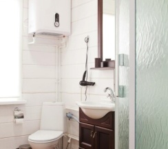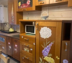 Не понравилось: Душевая кабинка слишком тесная, но на короткое пребывание в 2-3 дня вполне нормально. Зимой сильно дует из щелей вокруг входной двери, но прихожая и хорошее отопление это компенсируют. Сам дом бревенчатый и очень тёплый.