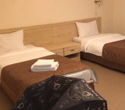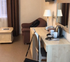 Останавливались вдвоем на ночь, чтобы выспаться после дороги. Номер стандарт с раздельными кроватями обошелся в 3900! В номере: санузел с душем ( не душевая кабина), две односпальные кровати, столик с маленьким холодильником внутри, кресло, стул- 1!, шкаф, ТВ, зеркало. Есть чайник и гостевой набор: чай, кофе, сахар.
