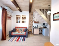 Отдыхали вчетвером (двое взрослых, двое детей). У нас был двухуровневый номер с телевизором, холодильником, микроволновка, маленькая кухонька с посудой и ТД. Есть все гигиенические принадлежности. Во дворе мануальная зона с беседкой. Хозяйка очень приветливая. Чисто, аккуратно, компактно. Рекомендую