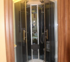 В номере: двуспальная кровать, прикроватные тумбочки, холодильник, телевизор, кондиционер, ванная комната с душем.