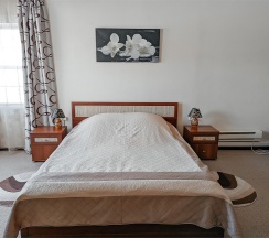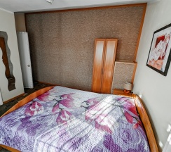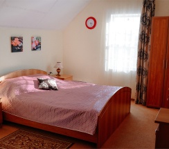 Номер для двоих гостей, со всеми удобствами. Большая двуспальная кровать, TV, Wi-Fi, вся необходимая мебель, холодильник. Санузел с душевой кабиной в номере. Окна выходят в сад.