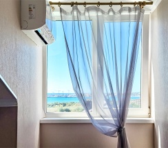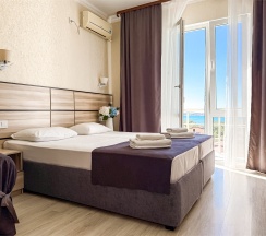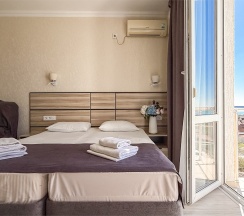 Часть номеров выходят на море, часть на горы, есть номера с балконом.