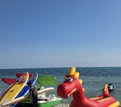 до пляжа идти 15 минут, рядом отличный детский парк лукоморье - вечером развлечение для ребенка.