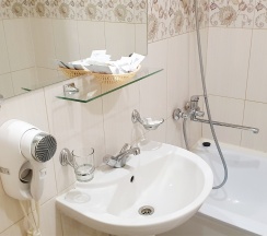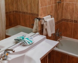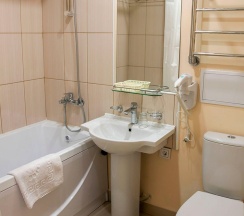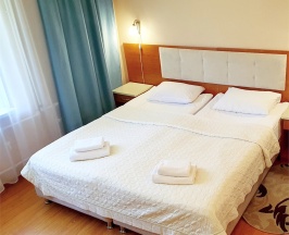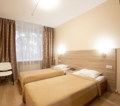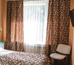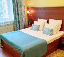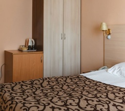 Удобный и комфортный однокомнатный номер повышенной категории для размещения одного или двоих гостей на основных местах. Приятный интерьер, выполненный в нежных светлых тонах, и небольшая площадь номера создают атмосферу уюта и спокойствия. Данный номер идеально подходит как для одного гостя, так и для семейной пары.
