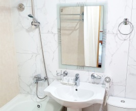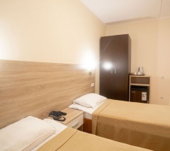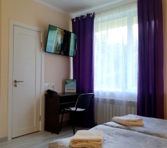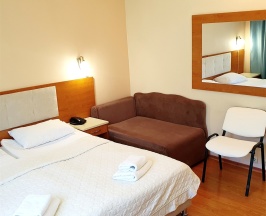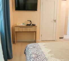 Удобный и комфортный однокомнатный номер для размещения одного или двоих гостей на основных местах. Приятный интерьер, выполненный в нежных светлых тонах, и небольшая площадь номера создают атмосферу уюта и спокойствия. Данный номер идеально подходит как для одного гостя, так и для семейной пары.