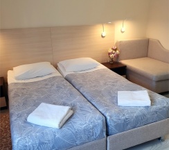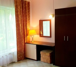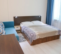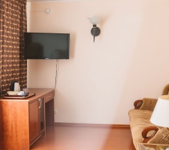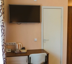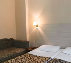 Удобный и комфортный однокомнатный номер повышенной категории для размещения двоих гостей на основных местах и одного - на дополнительном. Приятный интерьер, выполненный в нежных светлых тонах, создает атмосферу уюта и удобства. Данный номер идеально подходит как для двух гостей, так и для семейной пары с ребенком.