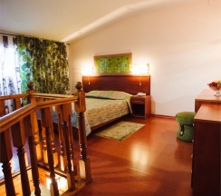 Двухуровневый двухкомнатный номер с прихожей предназначен для комфортного размещения двоих гостей на основных местах и еще троих – на дополнительных. Приятный интерьер в классическом стиле создает атмосферу уюта и удобства. Данный номер идеально подходит как для большой компании, так и для семейной пары с детьми.