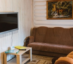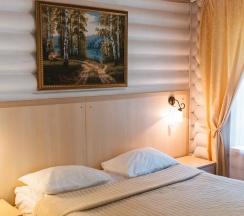 Двухкомнатный коттедж «Изба» с крыльцом и прихожей предназначен для комфортного размещения двоих человек на основных местах и еще двоих – на дополнительных. Изба построена из экологически чистого бревна. Русский «бревенчатый» стиль избы и уютный интерьер помогают погрузиться в атмосферу единения с природой и насладиться спокойствием и тишиной. Коттеджи расположены в живописном лесном массиве.