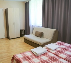 Удобный и комфортный однокомнатный номер для размещения двоих гостей на основных местах и одного - на дополнительном. Приятный интерьер, выполненный в нежных светлых тонах, создает атмосферу уюта и удобства. Данный номер идеально подходит как для двух гостей, так и для семейной пары с ребенком.