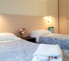 Просторный номер позволяет с комфортом разместить двоих гостей на основных местах, и ещё одного – на дополнительном. Ненавязчивый и уютный интерьер поможет вам почувствовать себя уютно и комфортно. Приятный интерьер, выполненный в нежных светлых тонах, создает атмосферу уюта и удобства. Данный номер идеально подходит как для трех гостей, так и для семейной пары с ребенком.