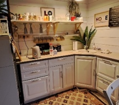 Также имеется общая кухня, где можно самому приготовить. Или заранее заказать у хозев завтрак, обед или ужин. Меню достаточно обширное и интересное.