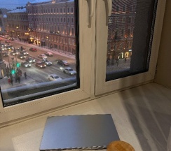 Уютный номер,очень понравился.Удобные матрасы и подушки.Доброжелательный персонал.Есть микроволновка,чайник,посуда,можно кушать в номере.Уборка каждый день, спасибо вам большое! Вид из окна на Невский проспект-шикарный!