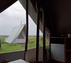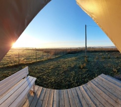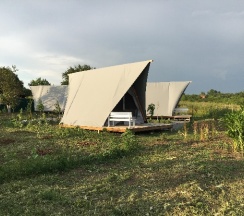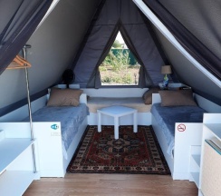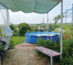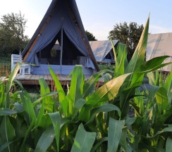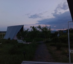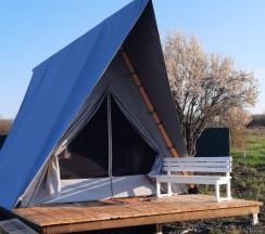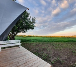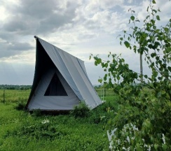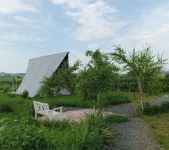 Замечательное место для перезагрузки от городской суеты, радушные хозяева, видно, что все сделано с душой, уютные и просторные палатки со всем необходимым (полотенца, одеяла, кулер с водой, чайник, холодильник, кружки, вентилятор-обогреватель, вешалки, сейф), на территории участка два бассейна, баня, летняя открытая кухня со всей утварью и посудой, мангал (уголь и розжиг можно купить на месте), душ и туалет. Хозяева продают домашние вино, сидр, наливки, варенье, сыры. Купили с собой сыр, оказался очень вкусным, но для любителей пряного и острого, тк в обсыпке из перца и специй. Утром и днем - пение птиц, вечером и ночью - стрекот цикад и сверчков, кваканье лягушек и ржание лошадей (тк рядом находится конюшня). Обязательно ещё вернёмся, чтобы закрыть гештальты в виде прогулки к речке (не смогли к ней пройти из-за затопленной дороги после ливней) и на конюшню. Ещё раз спасибо хозяевам за гостеприимство!