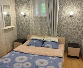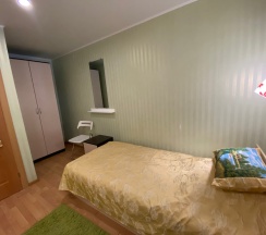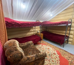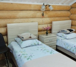 Номер площадью 14м2 находится в цокольном этаже коттеджа. В комнате одна двуспальная, бесплатный Wi-Fi, 2 прикроватные тумбы, шкаф и стул. На этаже 2 санузла и 1 душ общего пользования. А также в вашем распоряжении имеется кухня со всей необходимой утварью и техникой