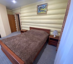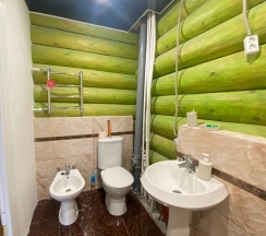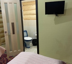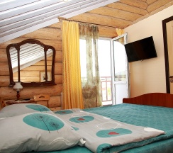 Номер площадью 15м2 находится на втором мансардном этаже коттеджа. Комната с санузлом и душем, выходом на собственный балкон, телевизором, бесплатным Wi-Fi. Есть возможность пользоваться общим холодильником, чайником и микроволновой печью