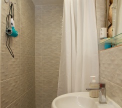 Номер находится на цокольном этаже. Одна двуспальная или 2 отдельные односпальные кровати, интернет, тумбочка, шкаф и стул. На этаже 2 санузла и 1 душ, интернет, тумбочка, шкаф и стул.