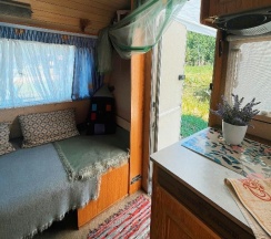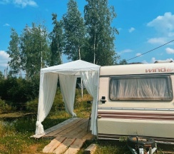 изначально планировали въехать в автодомик, к сожалению по техническим причинам этого не произошло, но добрая девушка администратор предложила нам альтернативу в качестве домика побольше, но за ту же цену! в итоге мы смогли воспользоваться и автодомом для поддержания желаемого вайба, и облачным домом – для переночёвки в тепле)
