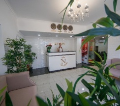 Нас приятно удивил этот гостевой дом. Чисто. Хорошие плотные постельное белье и полотенце. Мы сняли люкс на 3м этаже. Вышло нам это чуть больше 3,5к. В люксе 2 спальни. В каждой спальне зеркало, туалетный столик, кондиционер. Чистая ванная комната. Отдельный санузел. В ванной поставили чистые зубные щётки, одноразовые шампуни и гели для душа. В номере есть своя гостиная, телевизор, холодильник, электрический чайник. Дом 3х этажный. В каждом этаже стоят диваны и телевизор дополнительно.