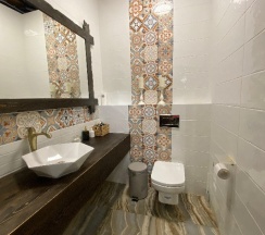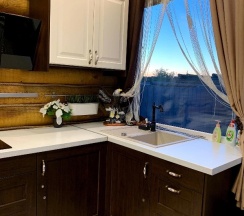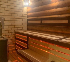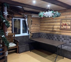 К чайной церемонии есть всё - большой стол, вместительный диван, и кухонные принадлежности, гарнитур, холодильник, раковина,всё что нужно под рукой. Место много можно устраивать вечеринку с танцами)) Посещали сауна, где у нас было легкое парение, с комфортом погрелись, попарились и привели себя в порядок под теплым душем, всем хватило пространства, каждая чувствовала себя, как дома. Так же современный, чистый сан узел. Имеется всё для личной гигиены, включая фен. Без раздумья, запланировали ещё девичник и уже забронировали снова себе домик с бассейном.