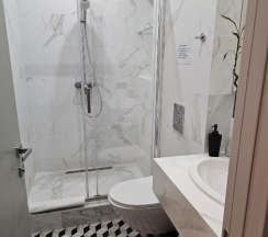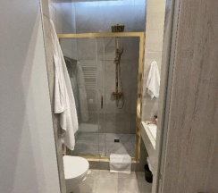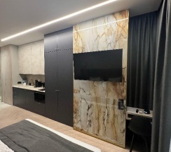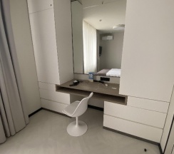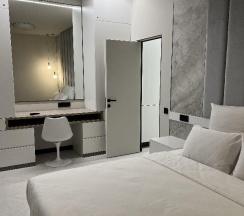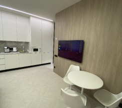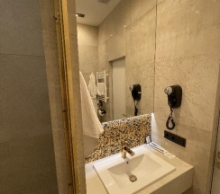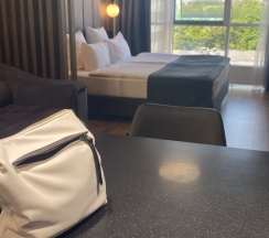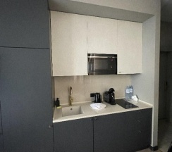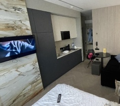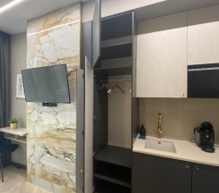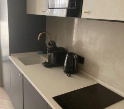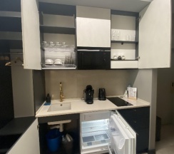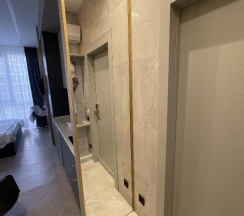 Замечательные аппартаменты, небольшие, но комфортные, уютные, есть абсолютно все, что нужно и даже больше. Кофемашина, универсальная зарядка, кофе и сливки, большие бутылки с водой и даже колонка Алиса - очень порадовали! Номер был чистый, на следующий день спросили нужна ли уборка, попросила принести воду, кофе, померять полотенца, все было сделано! Спасибо огромное, сервис на высшем уровне ❤️