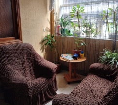 Останавливались здесь с мужем на 9 дней. Заселение в любое время суток, что огромный плюс. От жд вокзала идти 15 минут, все магазины и сувенирные лавки в пешей доступности. До моря 10-15 минут. Белье и полотенца меняют раз в 3-4 дня. Уборка в номерах тоже производится. Есть большая кухня, оборудованная посудой и кухонной утварью, большая обеденная зона. Хотелось бы, чтобы заменили в номерах кондиционеры, так как стоят слабенькие советские, которые еле поддувают и повесили телевизоры с WiFi модулем