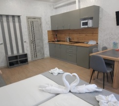 Добрый день.Приезжали по работе и хотелось поделиться своими впечатлениями об апаратаментах Тройка.При подъезде к отелю нам позвонила администратор Ольга, всё рассказала чётко и доступно и скоординировала наши дальнейшие действия по заселению.Красивое и уютное место,двор чистый и ухоженный,на территории есть бассейн с подогревом, который работает круглогодично,виды из апартаментов просто шикарны.В номерах очень чисто, уютно и приятно находиться.На ресепшне нас встретила администратор Ольга приветливо с уважением и улыбкой, всё чётко и доступно объяснила и провела нас в номер.Ставлю оценку 5, рекомендую не пожалеете.