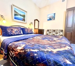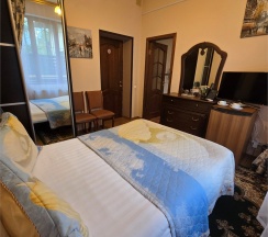 Двухкомнатный номер с двумя спальнями и просторной ванной, с площадью 44 кв.м. Идеально подходит для большого состава семьи. В номере двуспальная кровать и двухспальный диван. Номер с АРТ дизайном. В номере есть кондиционирование, затемняющие шторы, собственный сейф, фен, телевизор и мини-холодильник. В номере собственная ванная комната с просторной ванной. Вид во внутренний двор, расположен на 1 этаже.
