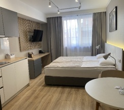 Отель понравился, чистый, просторный номер, каждый день уборка. Есть посуда, мы готовили завтрак, очень удобно. Так же плюс, что есть стиральная машина.