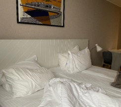 Хороший отель, номера светлые уютные. Довольно чисто и большинство предметов мебели новые. Есть некоторые потёртости, также у нас был сломан подоконник (потому что кто-то однажды его ее оряво установил) и опираться на него руками, стоя у окна было невозможно - иначе бы он отпал совсем. А так в целом всё остальное здорово. Звукоизоляция, душевая, холодильник - всё отлично, есть посуда, чайник микроволновка, плита и утюг на этаже. Мы приезжали обойти весь Питер за 4 дня и в номер приходили лишь поспать и отдохнуть, что вполне получилось! Спасибо