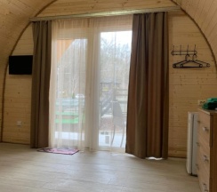 Понравилось: Место шикарное, в лесу! Мы купались в море, где было много людей, а отдыхать возвращались в тихое, уединенное Место, где можно половить рыбку, попить парного козьего молочка, пожарить шашлык в беседке и насладиться лесом. Шикарные срубы пахнут древесиной, все удобства. Вариант для тех, у кого есть автомобиль, так как дорога от моря по лесу.