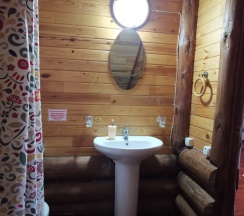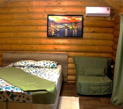 Отдельно стоящий эко-сруб одноэтажный. В домике имеется все необходимое для проведения: Санузел с душевной кабиной, мыльные принадлежности, фен, полотенца. В комнате имеется телевизор 32-й диагонали с центральными каналами, холодильник, чайник, кружки, чай, кондиционер зима/лето, москитная сетка, кровать двуспальная 160*200 Бокс-спринг (с возможностью разъединить кровати) и кресло-кровать на основе ортопедических ламель 70*190, шкаф, стол стулья зеркало, площадь сруба 25м2 и т.д