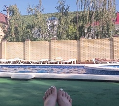 Отличный гостевой дом. В номере чисто, порядок, ежедневная влажная уборка, каждые 3 дня замена полотенец, бассейн с чистой водой,шезлонги, территория большая, есть детская зона, столы под навесом , мангал. Нам очень понравилось. Рекомендую