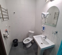 Номер большой, комплект полотенец + халат на каждого, но вода в городе желтоватая, соответственно белье и халат тоже желтоватые. Было ощущение, что в номере только сменили белье и вынесли мусор. На столе крошки и присохшие приправы от вермишели быстрого приготовления, на полу немного засохшей вермишели . Подоконники с толстым слоем пыли , на окнах нет сеток, но есть фумигатор и 1 пластинка, обогреватель, холодильник, чайник и чашки в номере, на каждого по 1 чайному пакетику и 2 пакетика сахара, микроволновка в коридоре. Бронировали на 2 ночи,на следующий день вынесли только мусор, чай и сахар не пополнили.