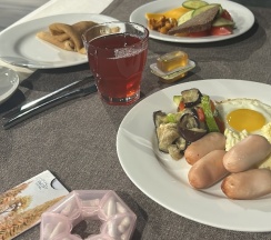 В подарок нам дали номер с шикарным видом на город, а с утра нас ждал невероятно вкусный завтрак в виде шведского стола. Это очень удобно, что не нужно после столь насыщенного дня ничего упаковывать и с сумками ночью ехать домой. Мы полностью насладились днем и праздником