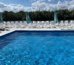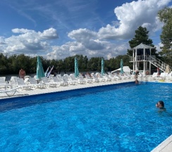 Отдыхали 4 дня! Бассейн теплый, баня шикарная. Еда норм!
