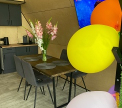 Есть пару моментов. В домике за 17 тр сутки хотелось чтоб дверь в душевую открывалась и закрывалась, чтоб вода не текла из душевой и туалета. Нам пришли, положили просто полотенце и все))) Не хватает мыла для рук в ванной. И штопора)