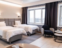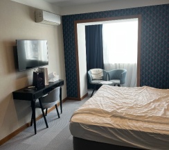 Номер: бронировали на 4 ночи. Номер чистый, просторный и уютный. Всё необходимое есть: Wi-Fi, сейф, халаты, полотенца, большой шкаф, большие зеркала, фен и тд. Вид из окна выходил на мост, восходы были потрясающие. Порадовала ежедневная уборка мусора и предоставление питьевой воды.