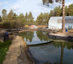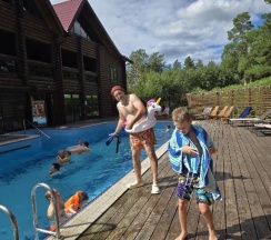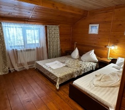Отличнчя база отдыха! Большая территория уходящая в лес, есть детская площадка . Снимали домик Веер , просторный, со всем необходимым, шикарный вид из панорамных окон, на лес)). Бассейн хороший, вода теплая, есть сауна, хамам. Брали сплав, очень понравилось, места живописные, природа впечатляет...Отдохнули великолепно! Приедем ещё! Рекомендую!